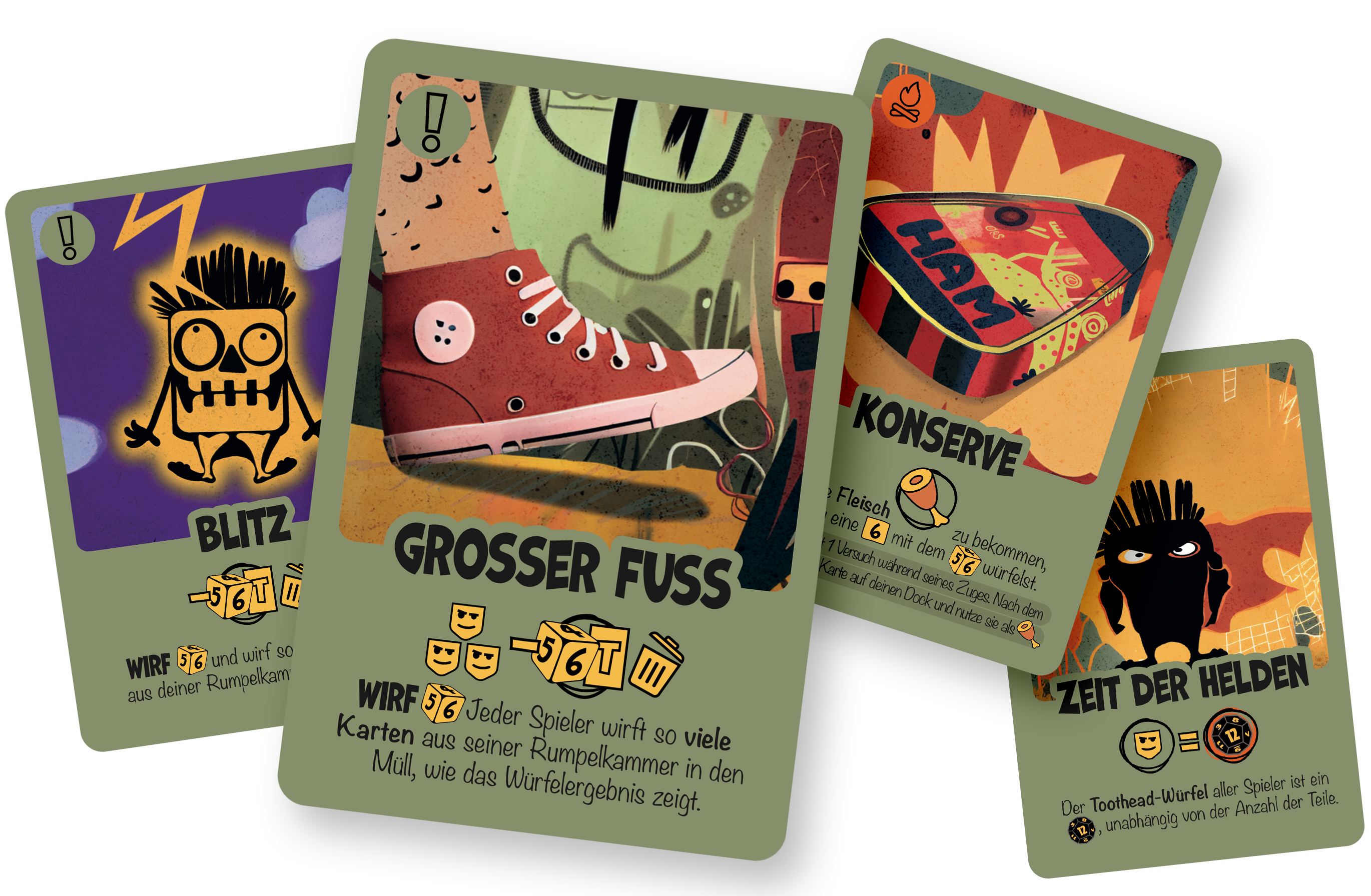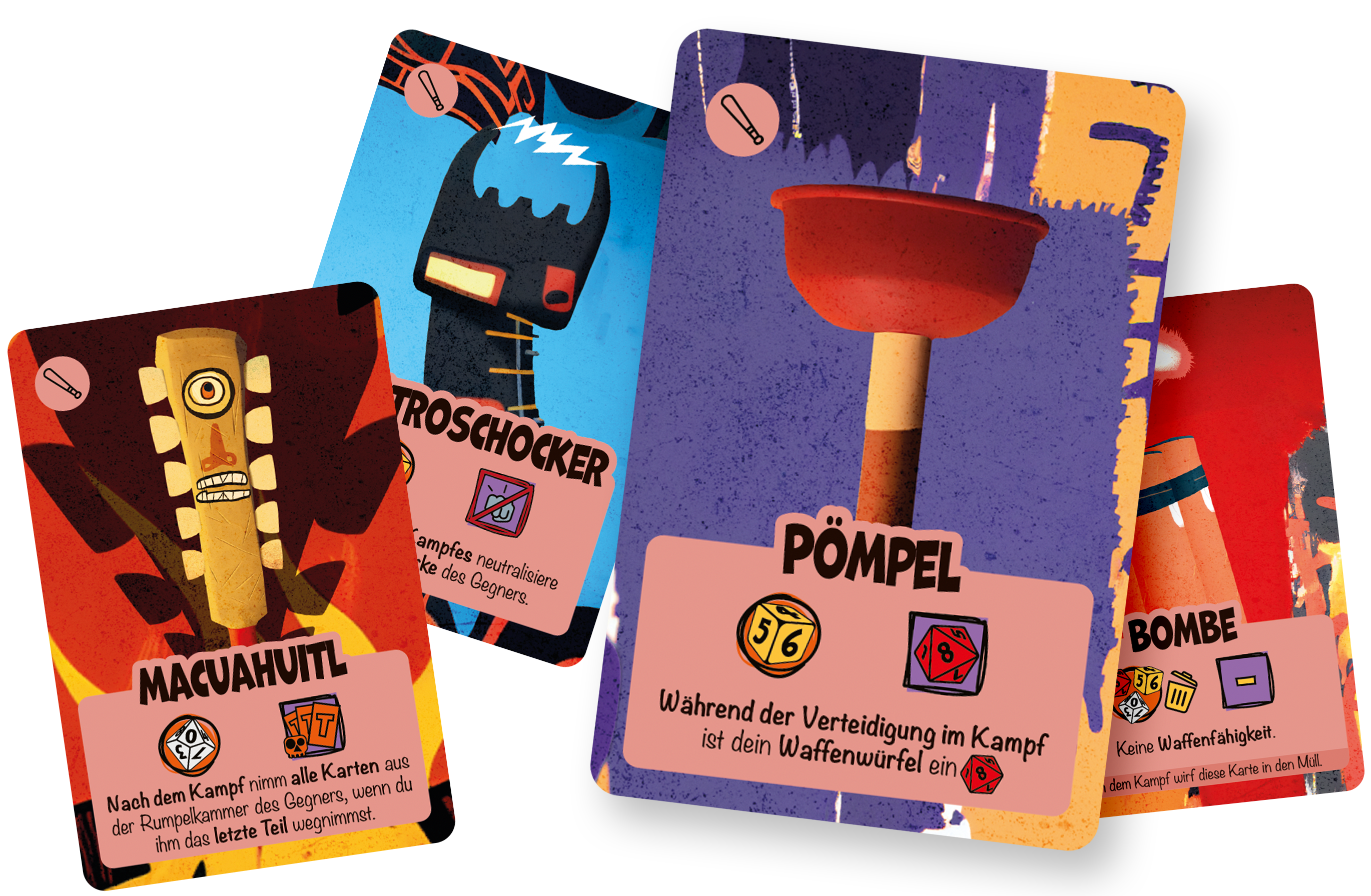 10 einzigartige Spezialkarten (sogenannter „Müll“), die die taktischen Möglichkeiten erweitern und die Interaktion zwischen den Spielern deutlich steigern.