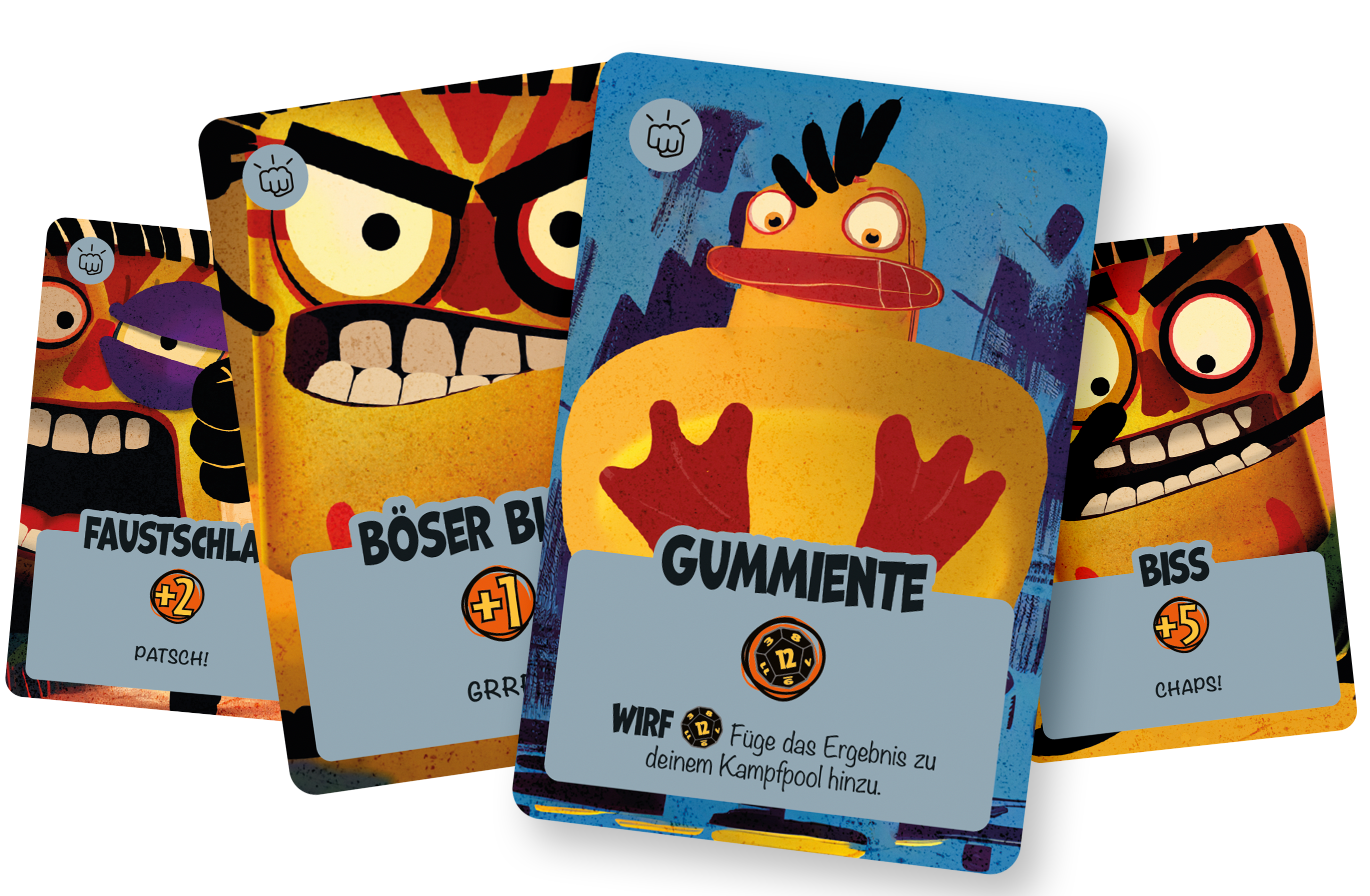 Kämpfe einen gnadenlosen Überlebenskampf! Baue bessere Waffen, lande gezielte Treffer und quäle deine Mitspieler mit hinterhältigen Aktionen. Und wenn alle schon die Zähne nach dir wetzen, spiele Spezialkarten oder hoffe auf die Gnade der Insel. Mit anderen Worten: Tu alles, um zu überleben. Das Spiel endet, wenn nur noch ein Spieler am Tisch übrig ist.