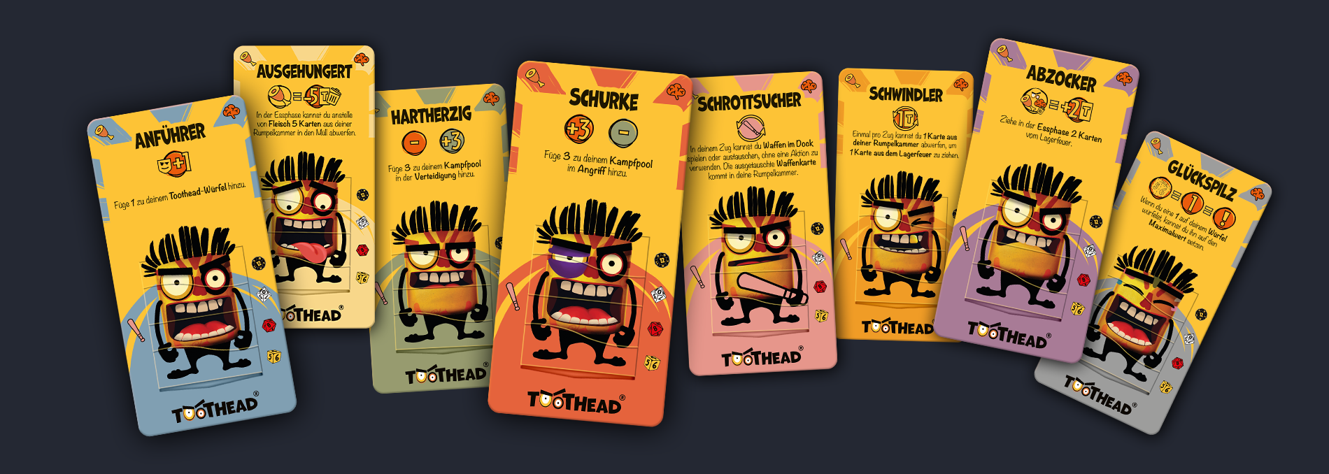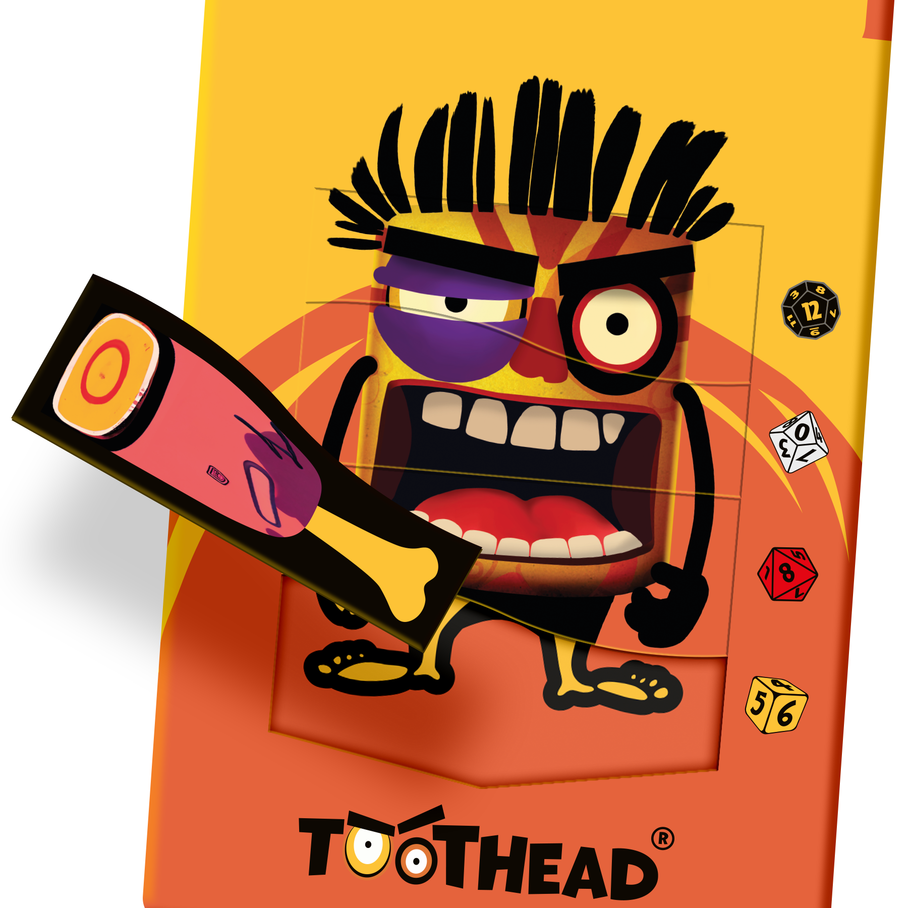 TOOTHEAD ist ein einfaches und lustiges Karten-Würfel-Brettspiel mit jeder Menge Interaktion zwischen den Spielern. Perfekt für Familientreffen und Partys mit Freunden – und außerdem eine ausgezeichnete Turnierspiel-Option.
