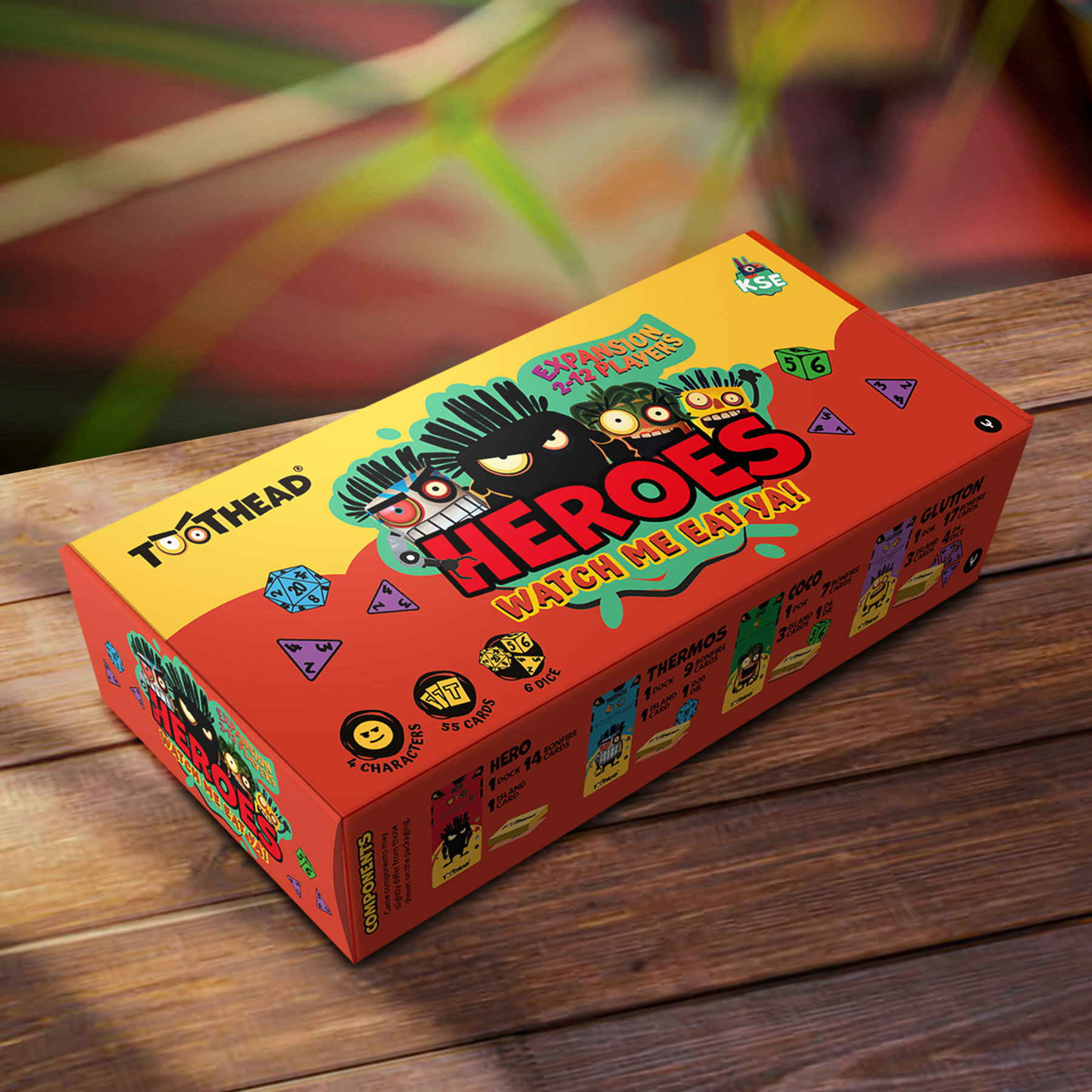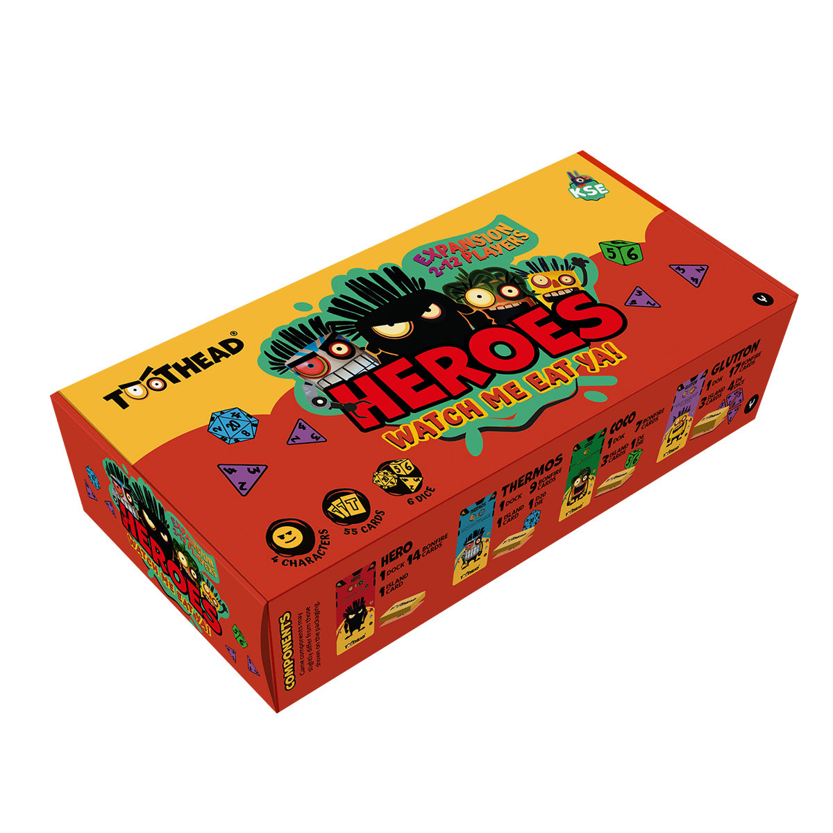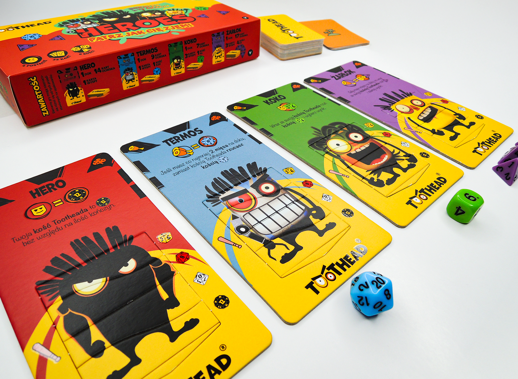 Dodatek HEROES wprowadza 4 nowe postacie, 55 kart oraz 6 kości i umożliwia rozgrywkę dla 2 do 12 graczy.